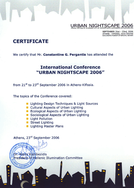 Constantine G. Pergantis has been in the lighting industry since 1985. He started out working for a Manufactures Representative in the DC area specializing in decorative lighting. He later became the East Coast Regional manager for an outdoor lighting company located in California. In both jobs he had the distinction of being the youngest in the industry. Constantine has consulted and taught seminars for many of the leading outdoor lighting companies. He has written numerous articles & has been featured in many national publications, radio & television programs. He is recognized as an expert in the industry. |